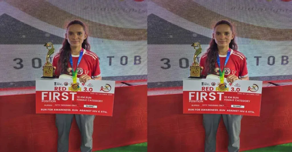दिमापुर।30 अक्टूबर 2025 का दिन उत्तराखण्ड के लिए गर्व का क्षण बन गया, जब चमोली जनपद के छोटे से गांव लुन्तरा (पो. नंदानगर) की बेटी कुमारी अनीशा ने राष्ट्रीय स्तर पर आयोजित रेड रन मैराथन 3.0 में देशभर के प्रतिभाशाली धावकों को पछाड़ते हुए महिला वर्ग में प्रथम स्थान हासिल किया। अनीशा ने 10 किलोमीटर की 3.0 प्रतियोगिता की दौड़ में प्रथम स्थान प्राप्त किया। यह प्रतियोगिता स्वास्थ्य एवं परिवार कल्याण मंत्रालय, भारत सरकार के राष्ट्रीय एड्स नियंत्रण संगठन (नाको) द्वारा नागालैण्ड के दीमापुर जनपद में आयोजित की गई थी। सचिव, चिकित्सा स्वास्थ्य एवं चिकित्सा शिक्षा/परियोजना निदेशक डॉ. आर. राजेश कुमार ने कुमारी अनीशा को राष्ट्रीय स्तर पर प्रथम स्थान प्राप्त करने पर हार्दिक बधाई देते हुए कहा कि उनकी यह सफलता पूरे उत्तराखण्ड के लिए गर्व का विषय है। उन्होंने अनीशा के उज्ज्वल भविष्य की कामना की।