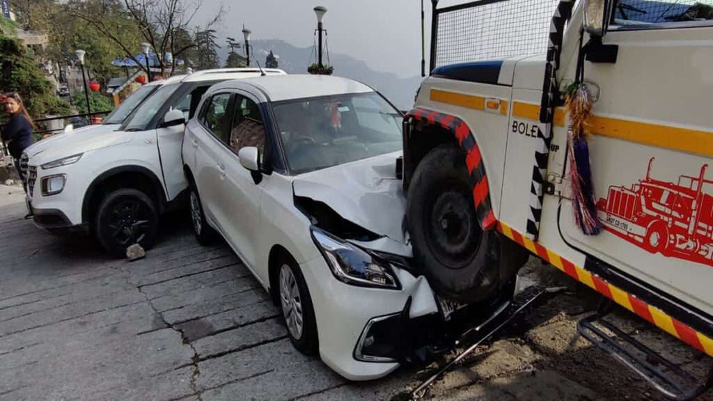मसूरी: पहाड़ों की रानी मसूरी में मंगलवार दोपहर एक बड़ा हादसा होते-होते टल गया. यहां हनीमून होटल के पास खड़ी गाड़ियों पर एक जीप अचानक अनियंत्रित होकर चढ़ गई. हादसे में तीन कारें और एक स्कूटी क्षतिग्रस्त हो गईं. गनीमत रही कि उस वक्त कोई व्यक्ति वाहनों के भीतर मौजूद नहीं था, वरना घटना गंभीर रूप ले सकती थी.